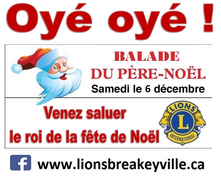 Samedi 6 décembre 2025, le Père Noël sera de retour pour parcourir les rues de Breakeyville pour saluer les petits enfants et les plus grands !